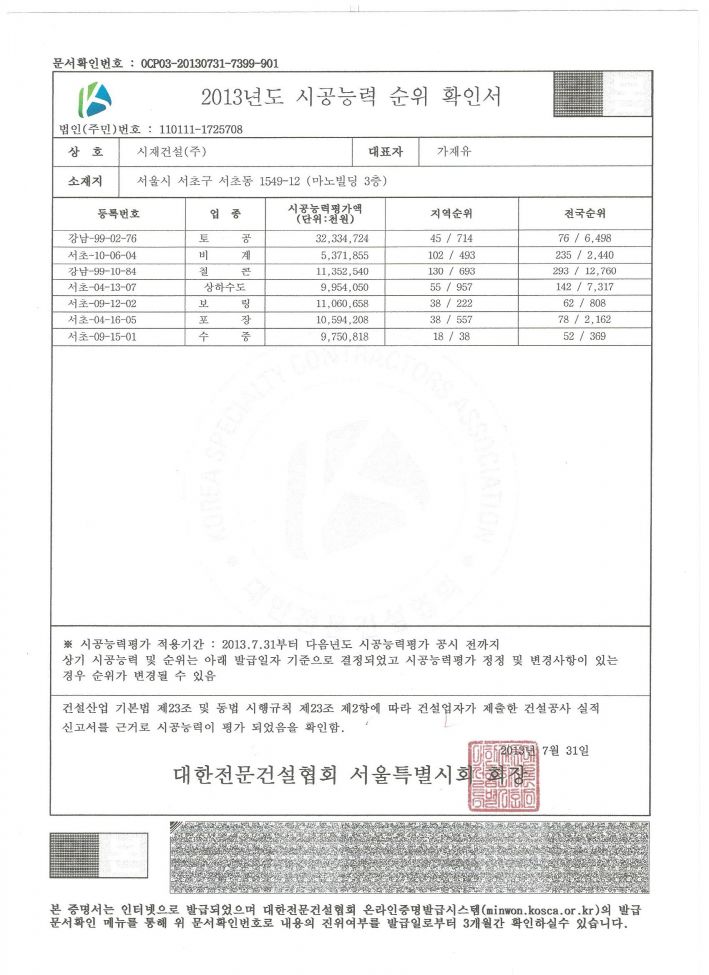 2013년도 시공능력순위 확인서 페이지 정보 등록자 관리자 등록일 18-09-05 13:45 조회 2,113 관련링크 이전글 다음글 목록 본문 2013년도 시공능력순위 확인서 이전글 다음글 목록