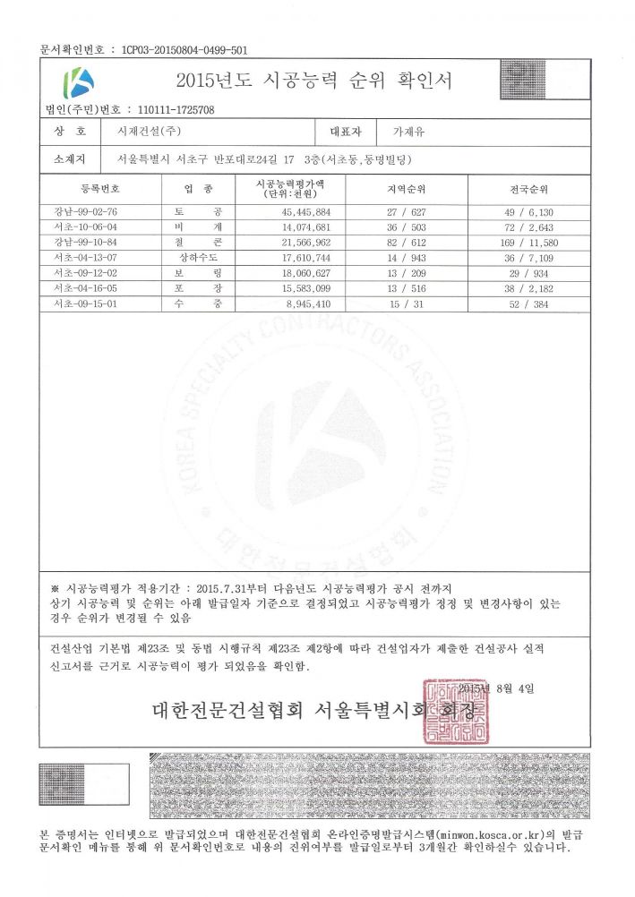 2015 시공능력 순위 확인서 페이지 정보 등록자 관리자 등록일 18-09-05 13:45 조회 2,041 관련링크 이전글 다음글 목록 본문 2015 시공능력 순위 확인서 이전글 다음글 목록
