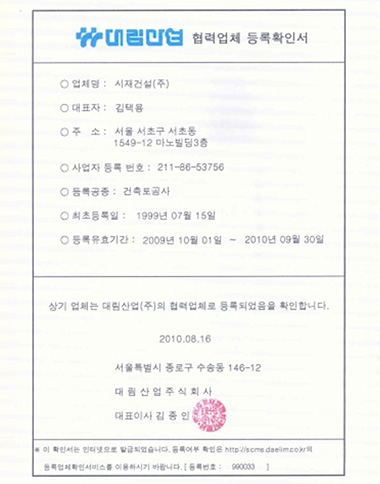 대림산업 협력업체 등록확인서 페이지 정보 등록자 관리자 등록일 18-09-05 14:23 조회 3,667 관련링크 이전글 다음글 목록 본문 대림산업 협력업체 등록확인서 이전글 다음글 목록