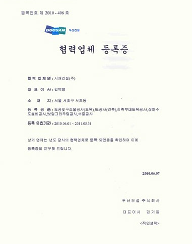 두산건설주식회사 협력업체 등록증 페이지 정보 등록자 관리자 등록일 18-09-05 14:23 조회 2,914 관련링크 이전글 다음글 목록 본문 두산건설주식회사 협력업체 등록증 이전글 다음글 목록