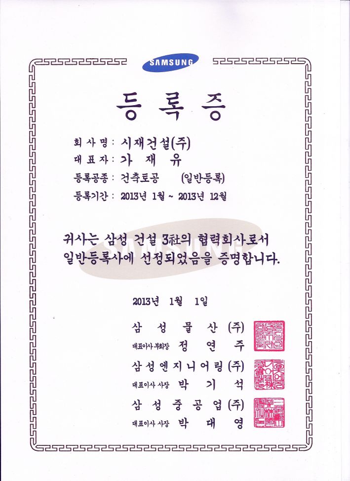 삼성건설3사 협력업체 등록증 페이지 정보 등록자 관리자 등록일 18-09-05 14:18 조회 2,449 관련링크 이전글 다음글 목록 본문 삼성건설3사 협력업체 등록증 이전글 다음글 목록