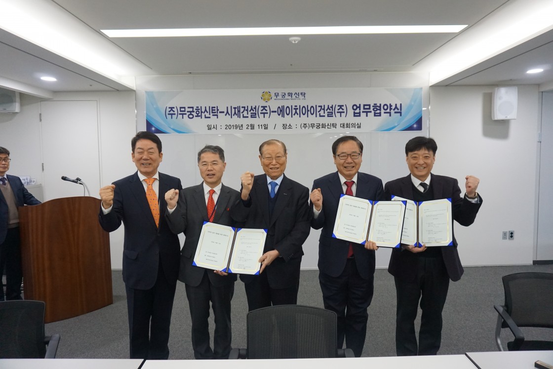 2019년 2월 11일 우량 건설업체인 시재건설㈜, 에이치아이건설㈜와 부동산금융그룹을 지향하는 ㈜무궁화신탁 삼사간 전략적 업무협약을 체결하였다. 시재건설㈜, 에이치아이건설㈜는 일반건설부문 및 주택건설부문 등이 주요 사업분야인 우량 건설회사이며, ㈜무궁화신탁은 신탁업계 상위도약을 목표로 하는 부동산신탁사로서,금번 전략적 업무협약 체결은 삼사가 더욱 성장할 수 있는 발판을 마련한 계기가 될 전망이다.